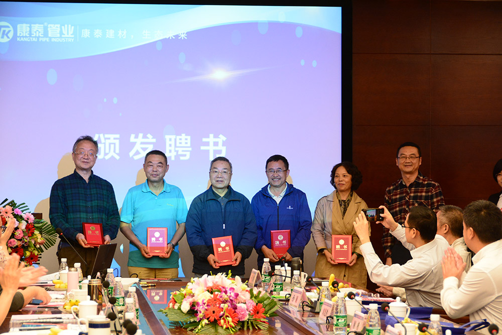 在熱烈而友好的氣氛中,各位領導分別為《“塑膠管道工程技術中心”、“塑膠管道聯(lián)合科研基地”》名譽主任委員、主任委員、副主任委員、資深專家頒發(fā)了聘書。