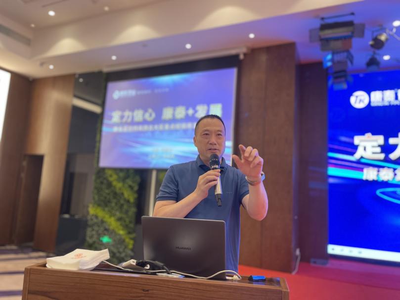 圖為副總裁張文霖作《康泰產(chǎn)品配套保障》報告
