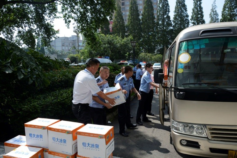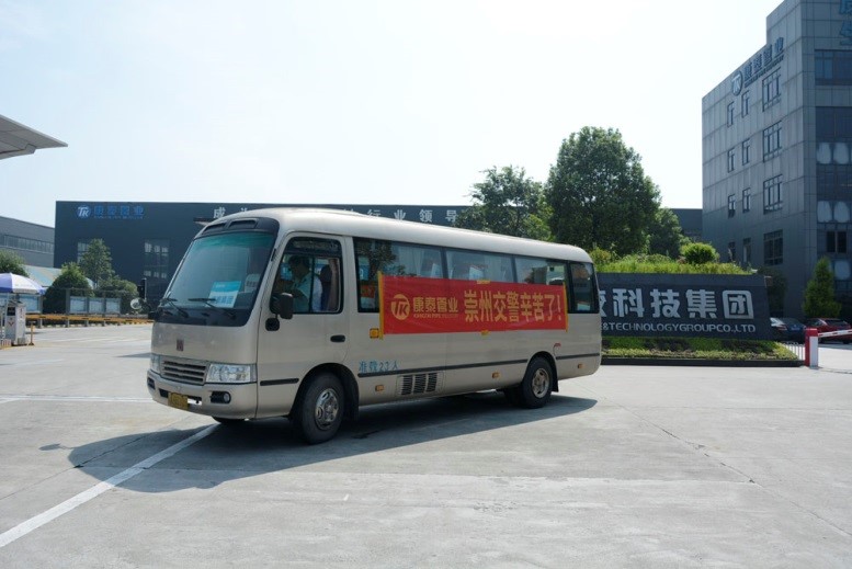 ? ? ? ? “為了方便市民出行,交警365天都堅(jiān)持在一線執(zhí)勤,特別的辛苦。作為本地企業(yè),我們也希望自己的一點(diǎn)小舉動(dòng)能為廣大交警和協(xié)管員同志送去一份清涼和關(guān)懷,以感謝他們的辛勤付出?!?月16日上午,康泰集團(tuán)工會(huì)主席吳彬帶領(lǐng)公司員工專程將礦泉水和防暑藥品等送到了崇州市交警大隊(duì),并轉(zhuǎn)交到交警手中,為他們帶去了絲絲涼意。